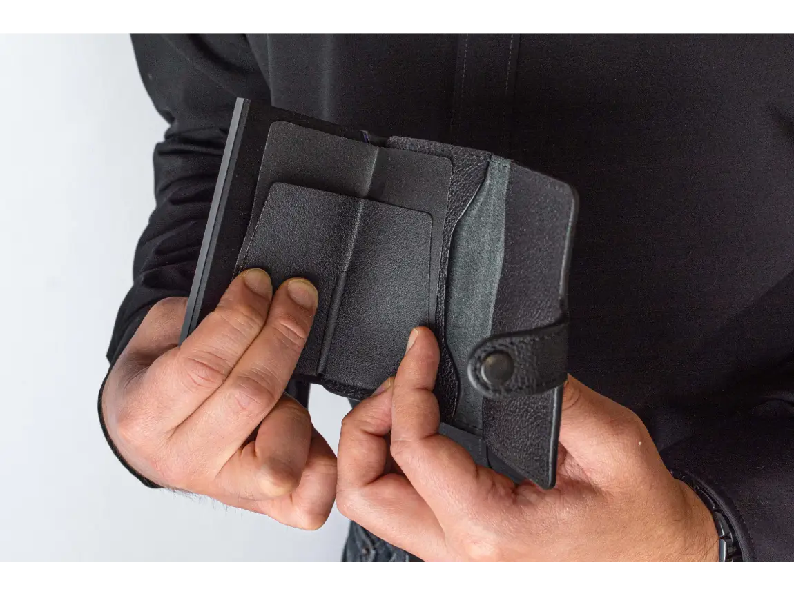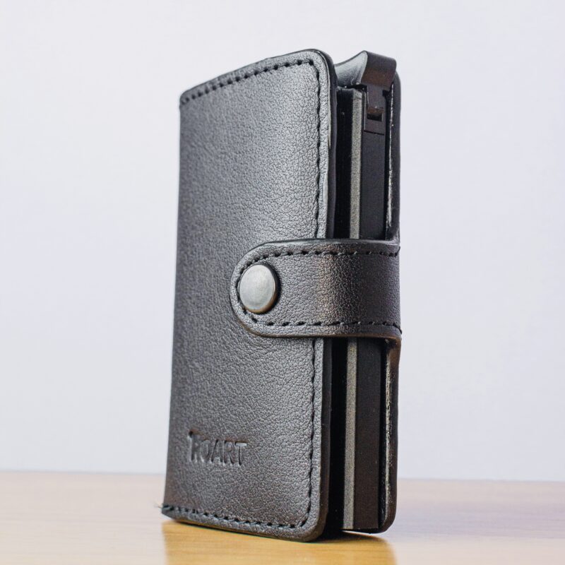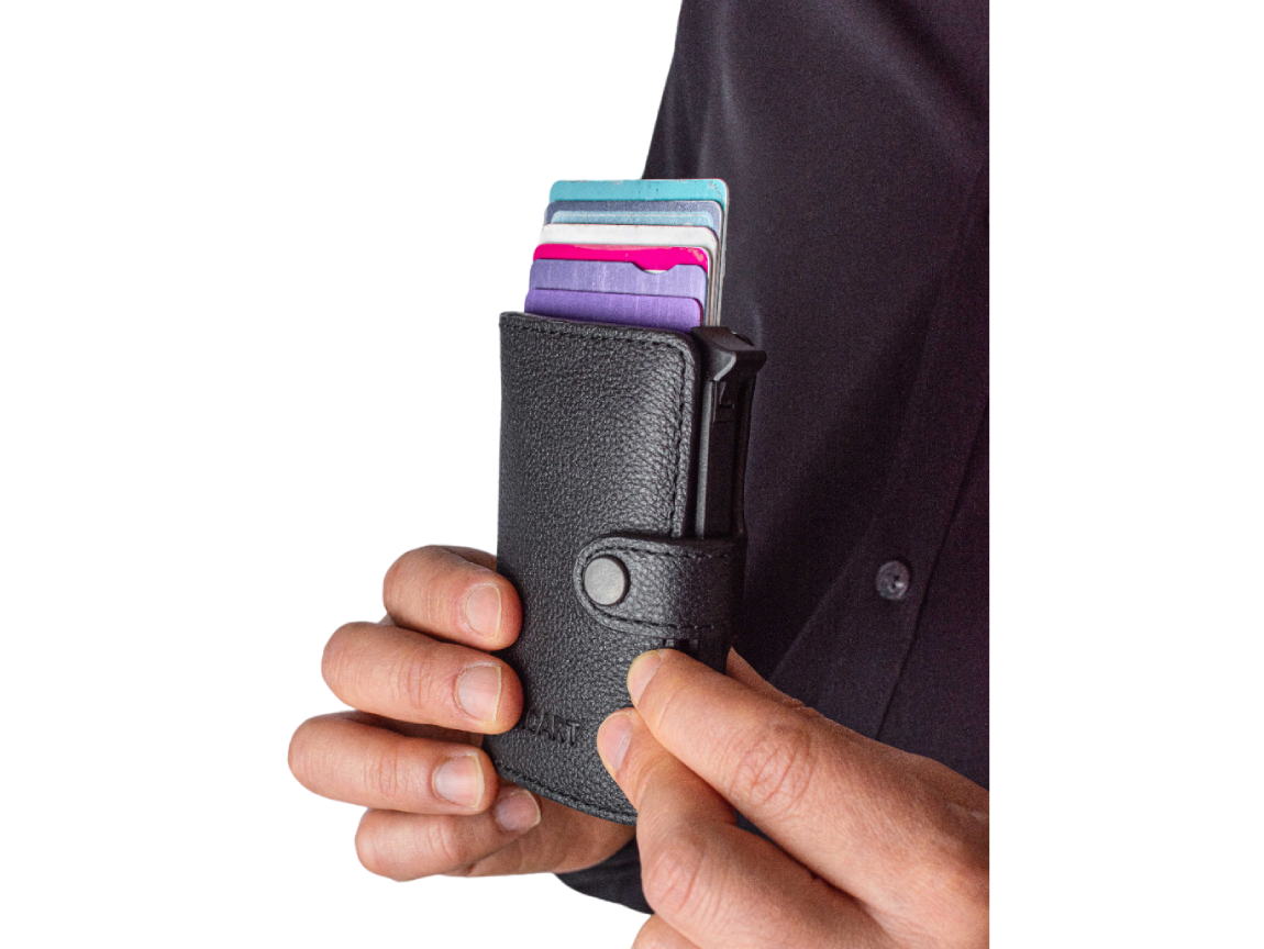 El elemento más destacado es su ingenioso mecanismo pop-up, que permite acceder a las tarjetas de manera rápida y sencilla. Con solo pulsar un botón, las tarjetas se despliegan en un suave movimiento, facilitando la selección sin necesidad de rebuscar. Este sistema no solo es práctico, sino que también añade un toque moderno al diseño.